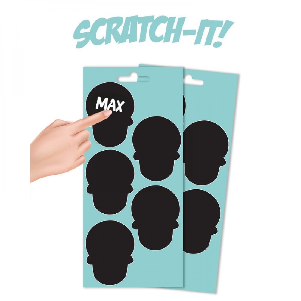 UTILISATION : Très simple à utiliser, il suffit de gratter le sticker avec un ongle ou la pointe d'un stylo pour écrire dessus ! Tu peux ensuite le coller où tu veux comme une gommette. Convient aux enfants de plus de 3 ans.
