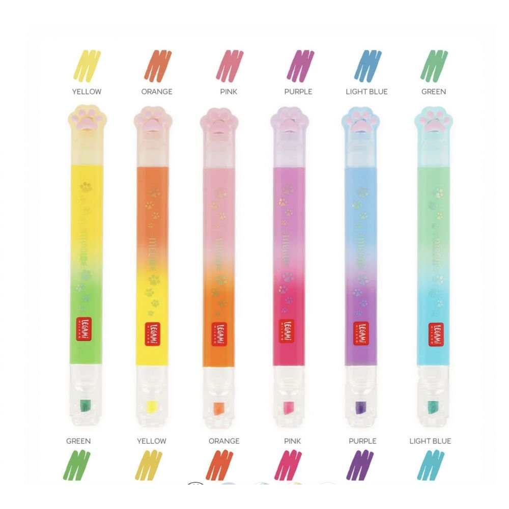 12 Couleurs en tout pour mettre la patte sur chaque feuille. Set de 6 Surligneurs sur le thème Chaton à Pointe Double pour doubler les couleurs... et l’amusement !