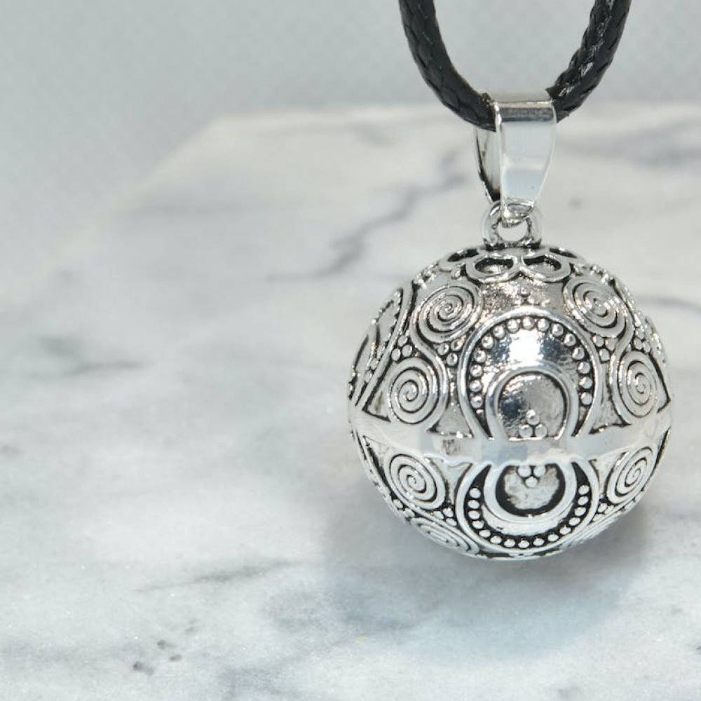 Les femmes enceintes de Bali et du Mexique à l’époque portaient traditionnellement ces appelants d’anges lorsqu’elles étaient enceintes. Le tintement du bola apaise et calme le bébé. Dans la tradition indonésienne, le pendentif de grossesse est offert comme premier cadeau à la femme enceinte.