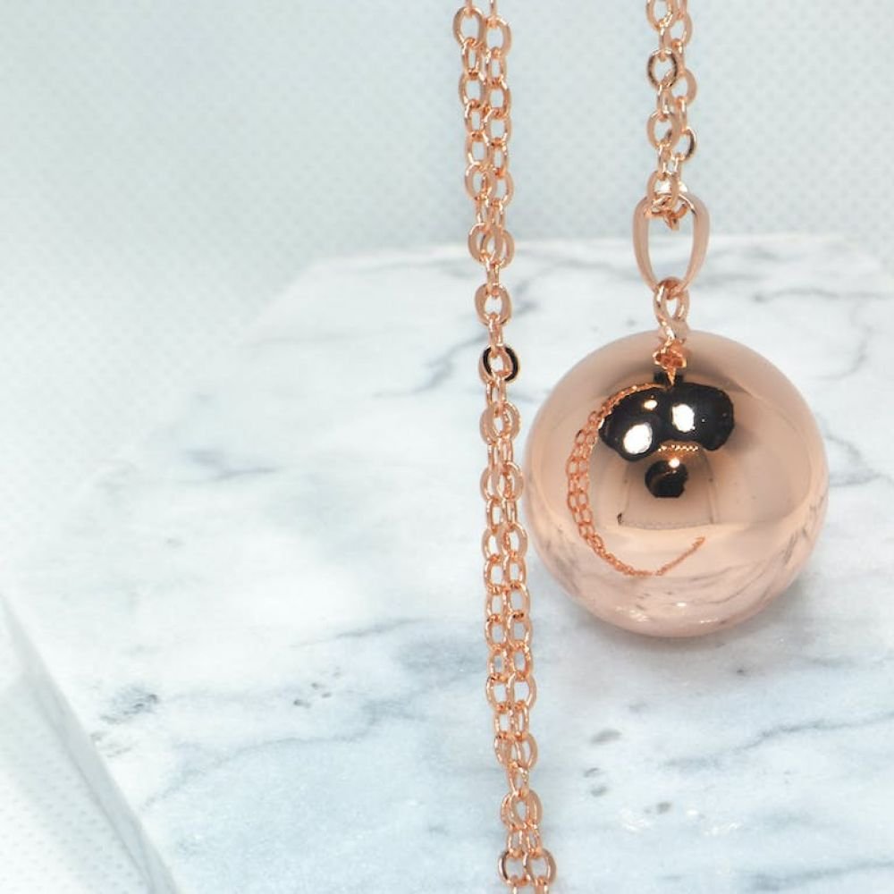 Les femmes enceintes de Bali et du Mexique à l’époque portaient traditionnellement ces appelants d’anges lorsqu’elles étaient enceintes. Le tintement du bola apaise et calme le bébé. Dans la tradition indonésienne, le pendentif de grossesse est offert comme premier cadeau à la femme enceinte.