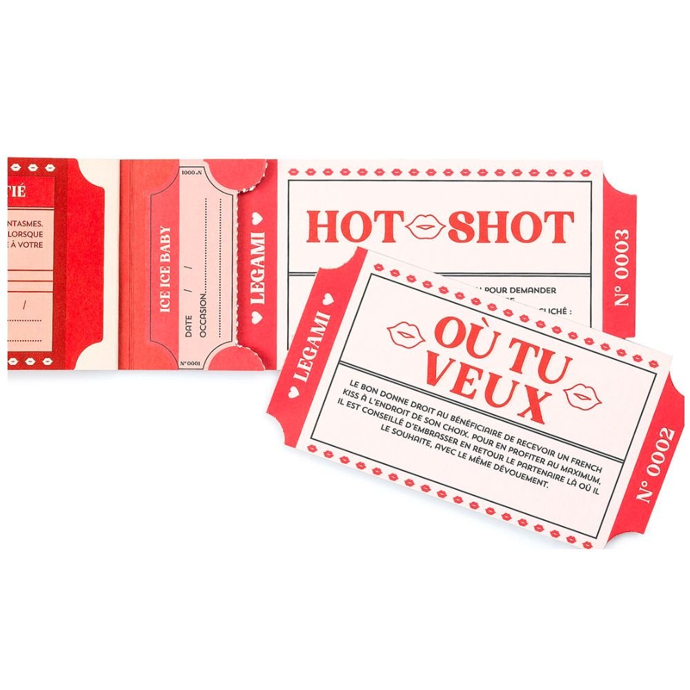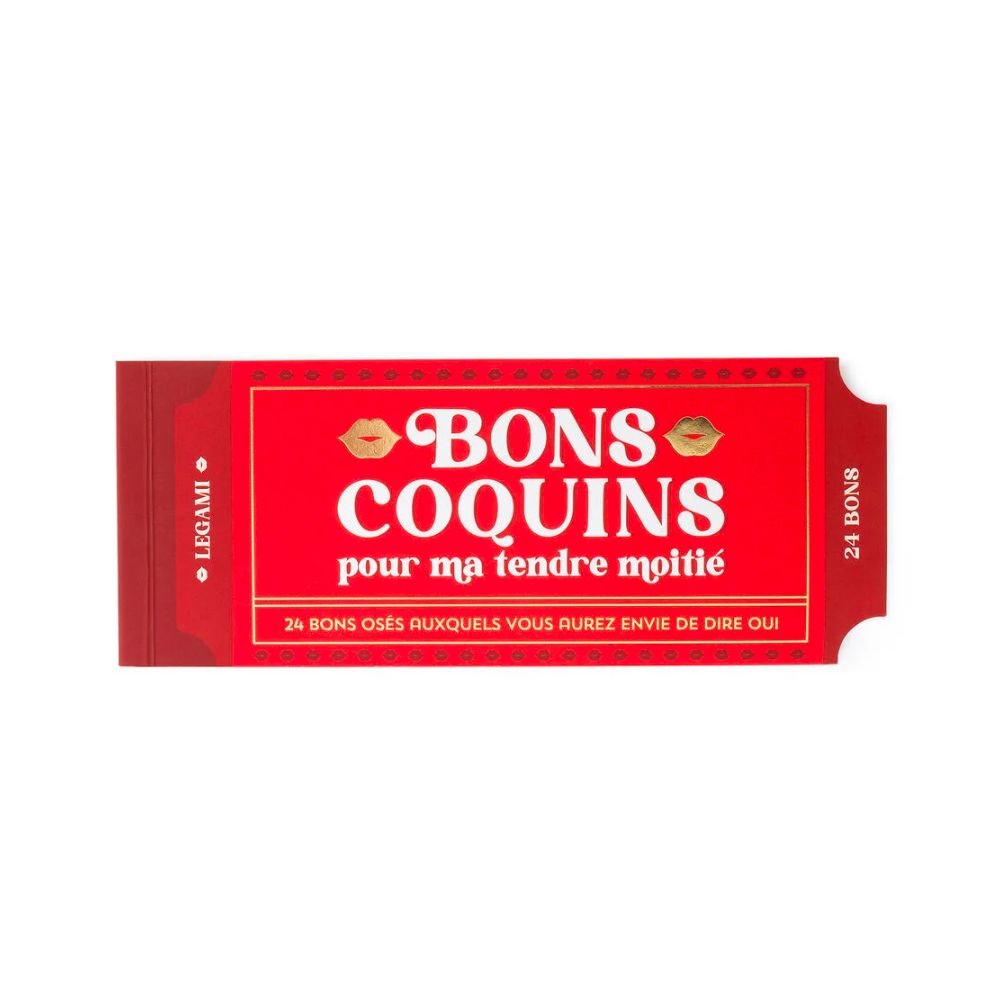 Le Carnet de 24 Bons Coquins de Legami est l’idée sexy, sans jamais être vulgaire, à offrir à son ou sa partenaire. Un éventail de situations variées dédiées aux couples qui ont envie de briser la routine ou qui recherchent des idées originales et inattendues. Il suffit de choisir un bon, de le détacher en suivant la ligne de perforation et de le donner à son ou sa partenaire. Prêts à vous lancer ?