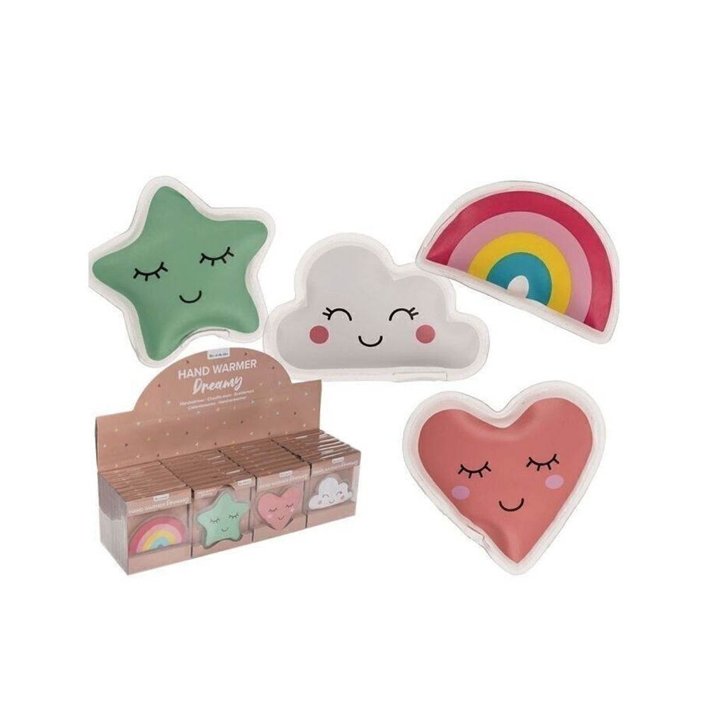Chauffe-mains, Dreamy, environ 10 cm, 4 assortis, dans une boîte en plastique, 32 pièces en présentoir