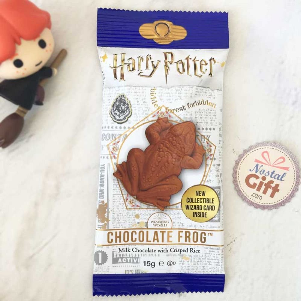 Cette grenouille en chocolat au lait et riz soufflés est délicieuse. Son goût alternant le fondant du chocolat et le croquant du riz soufflé (à l’image d’un chocolat Crunch). En plus de cette chocogrenouille, tu trouveras dans ce paquet une carte collector à collectionner.