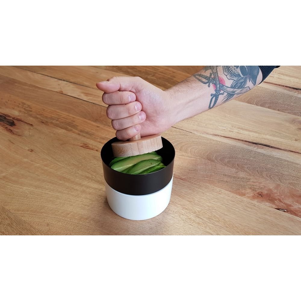 Pressez l’avocat à travers la grille spéciale à l’aide du pilon et ajoutez des épices ! C’est déjà prêt !
