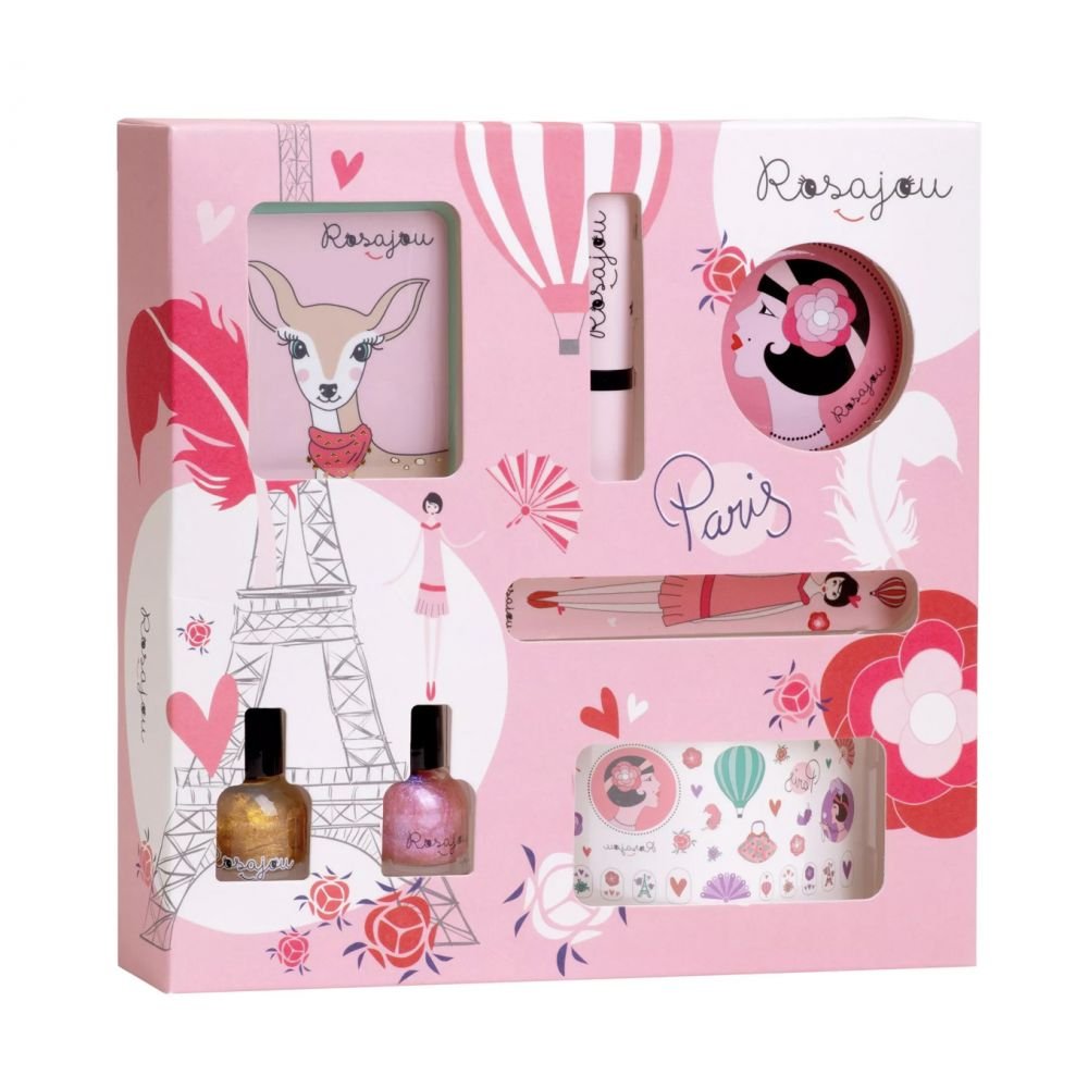 Avec son superbe design sur le thème des Années 20, ce coffret est idéal pour offrir et faire des heureux.ses. Contenu du coffret : 1 x Boîtier fards à paupières + 1 x Rouge à lèvre Rubis – rose + 1 x Vernis Magic – rose bonbon + 1 x Vernis Chéri – doré + 1 x Miroir de poche + 1 x Lime à ongles + 1 x Planche de tatouages à l’encre de soja.