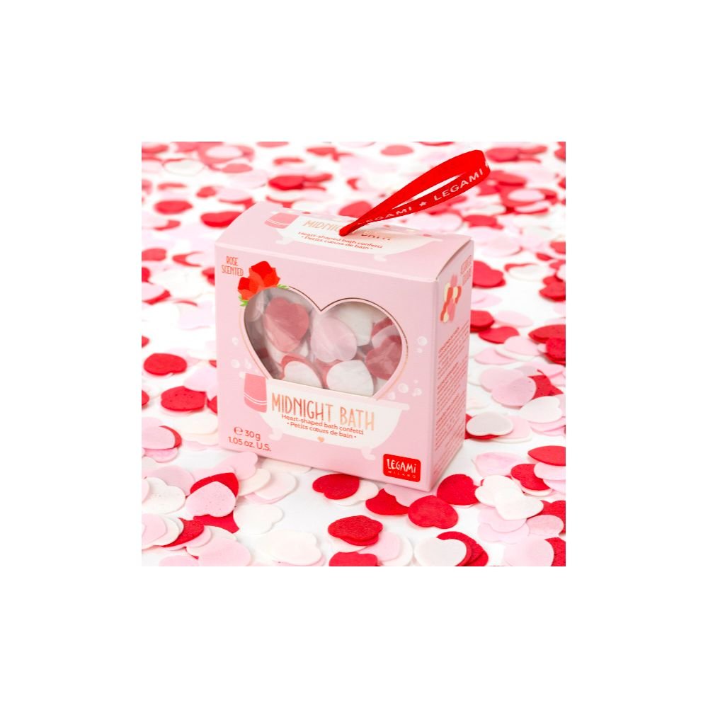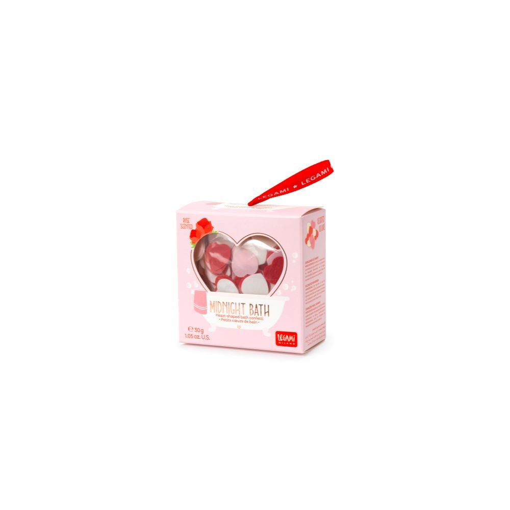 Les Confettis de Savon en Forme de Coeur - Midnight Bath de Legami sont parfaits pour surprendre votre partenaire avec un bain romantique ou pour vous accorder un moment rien qu'à vous dans le bain. Au moment de se dissoudre, ils laissent un parfum unique et une atmosphère romantique à souhait.