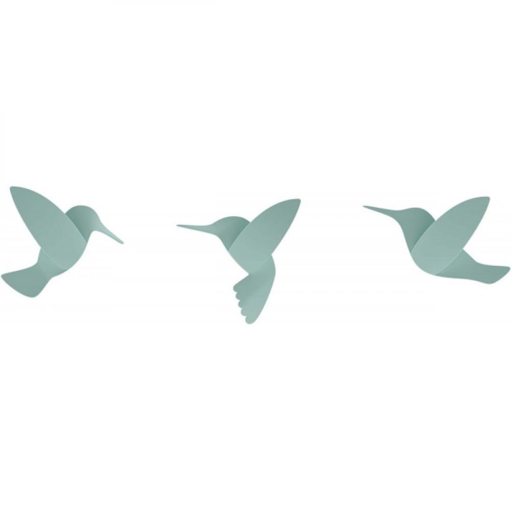 Une petite nuée d’oiseaux en couleur envahit vos murs avec ce set de 9 colibris, déco murale inédite créée par la marque Umbra. Composé de 3 oiseaux rigides bleus, 3 oiseaux verts et 3 oiseaux blancs de 12 x 8 cm, vous pouvez les disposer au mur individuellement comme vous le souhaitez. Très astucieux, il y a 3 formes différentes de colibris, ce qui permet de varier non seulement les couleurs mais aussi les formes.
