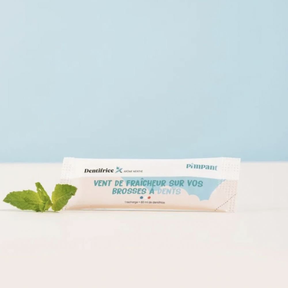 Fraaaaais devant ! ???? On vous présente le dentifrice menthe JU ! Une recharge en poudre de 8gr à diluer avec l’eau du robinet permet de créer 80ml de dentifrice menthe (comme un dentifrice en tube classique).