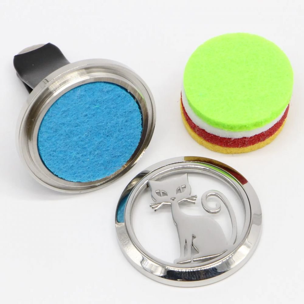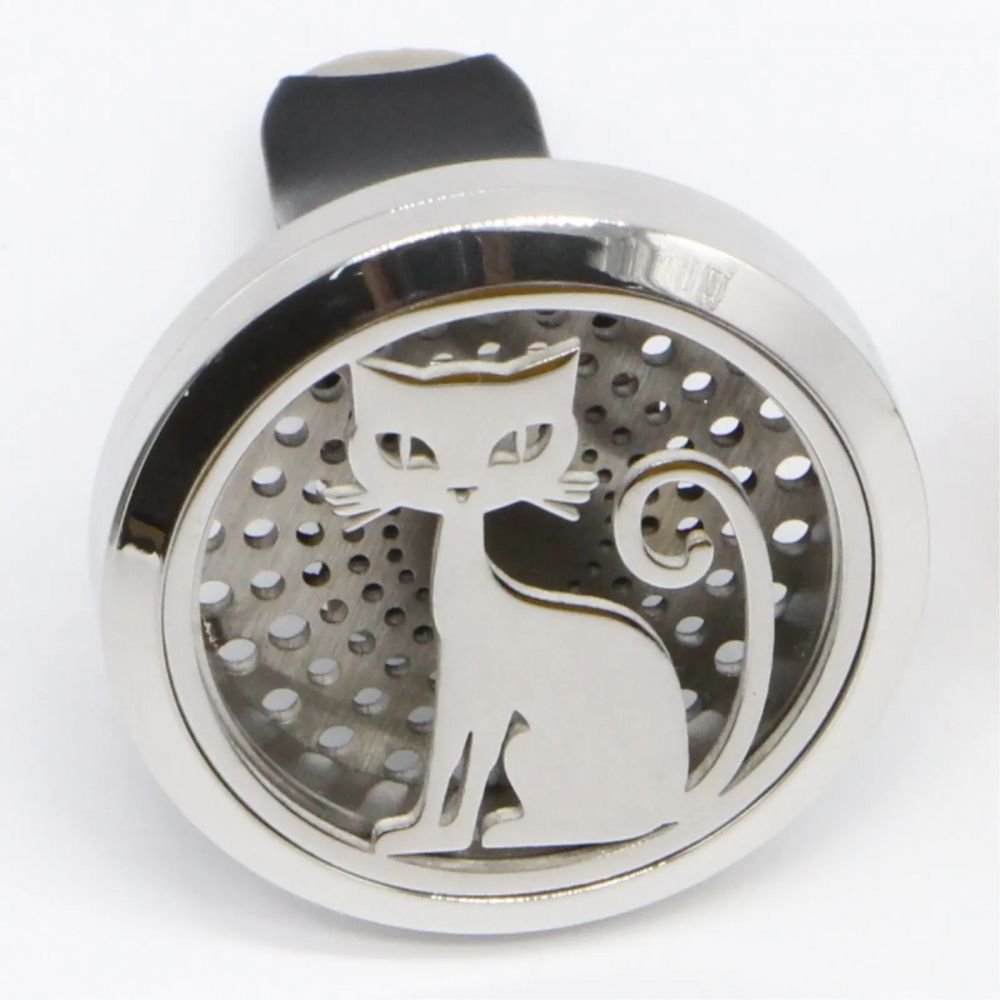 Ce diffuseur voiture en inox se clipse sur la grille d’aération et permet de créer une atmosphère saine et agréable dans le véhicule. Sa matière en inox et son motif lui permettent d’apporter une touche design à votre habitacle. Le motif « chat » apporte la touche déco originale avec un côté porte-bonheur.