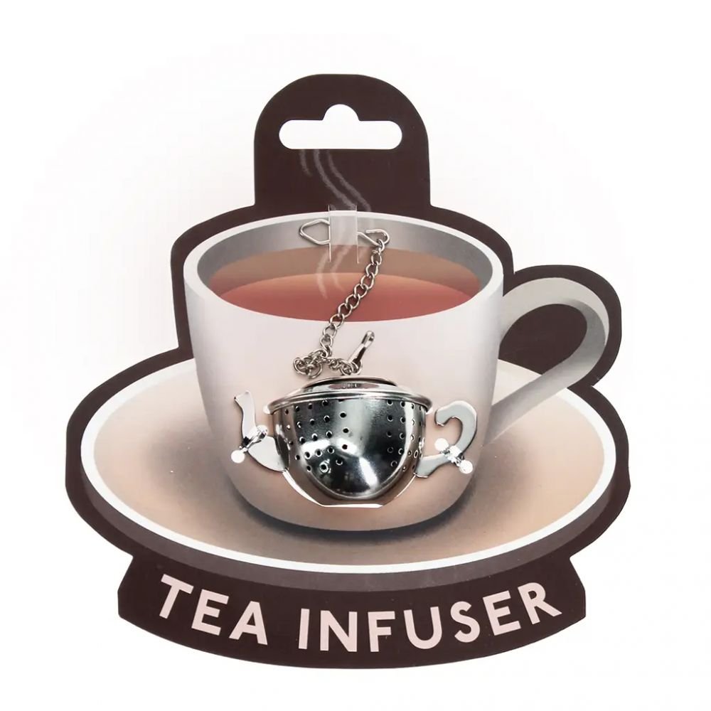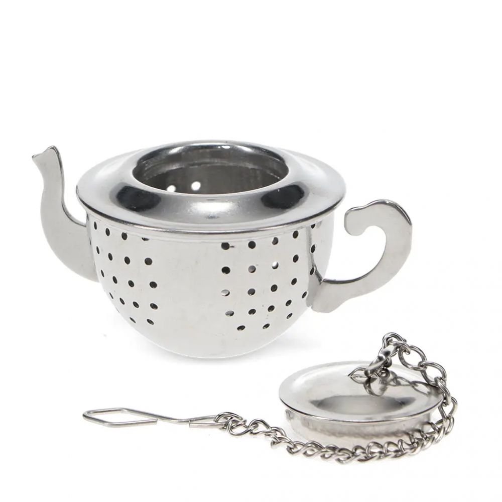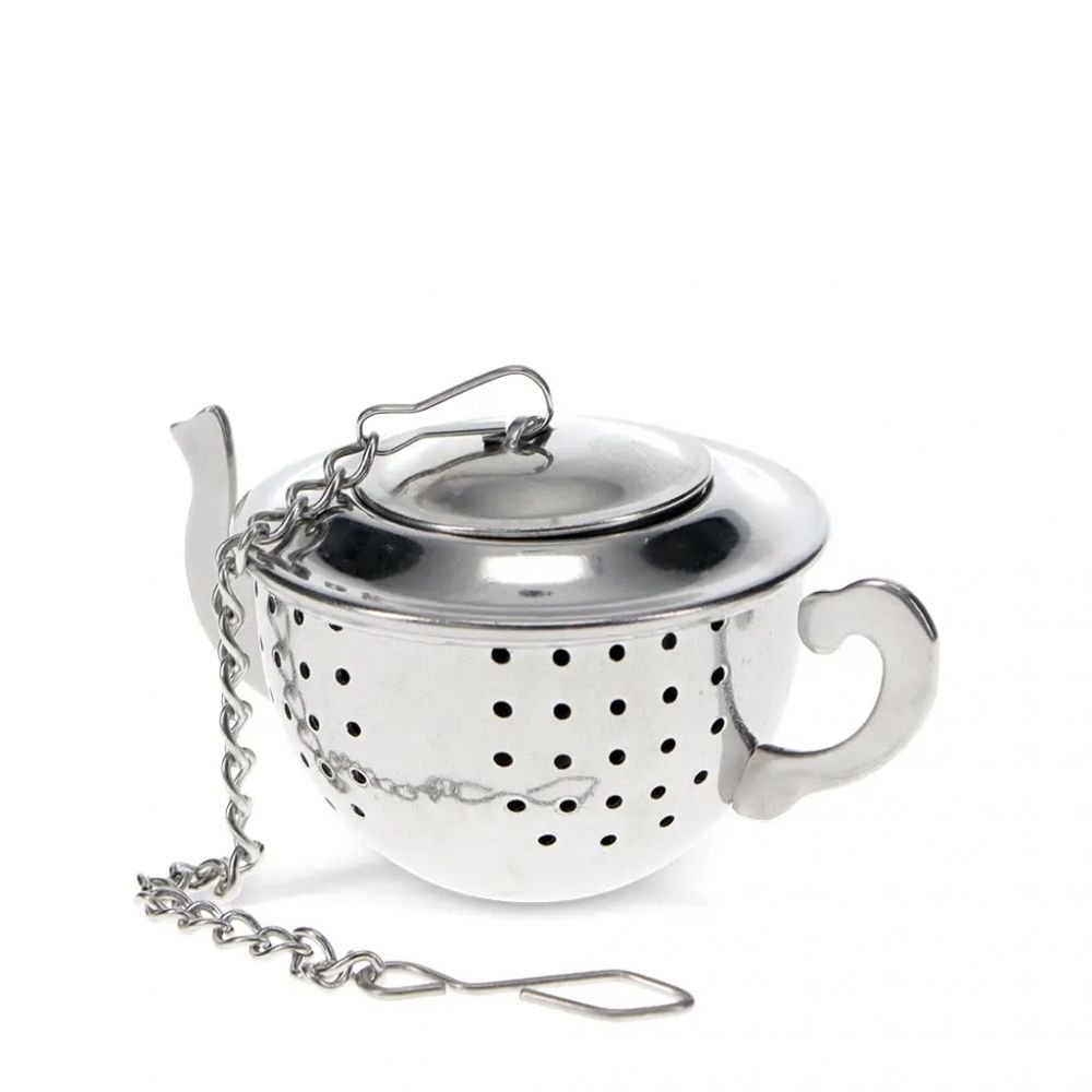 Infuseur à thé en acier inoxydable en forme de théière charmante. Facilite la préparation de la tasse parfaite de thé en feuilles. Il suffit de remplir l'infuseur avec vos feuilles de thé préférées, puis de l'immerger dans une théière, une tasse ou un mug rempli. Une fois l'infusion désirée atteinte, retirez-le avec la chaîne attachée.