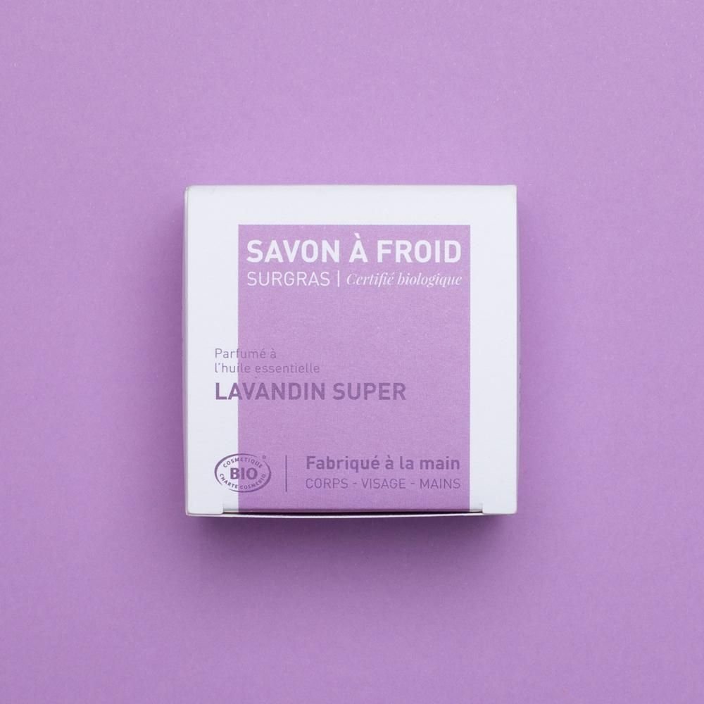 Lavandin Super est un savon à froid certifié biologique, sans couleur ajoutée et parfumé avec de l'huile essentielle de lavandin super.