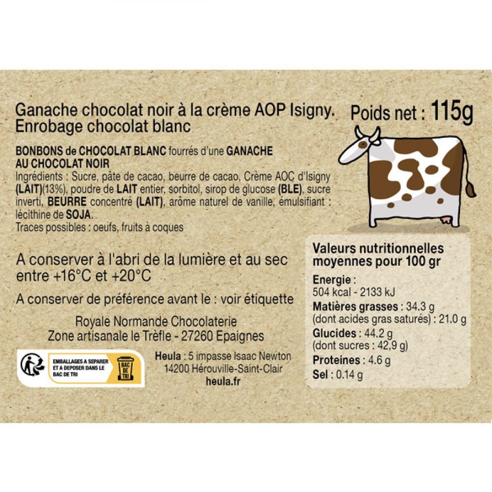 Ganache chocolat noir à la crème AOP Isigny. Enrobage chocolat blanc