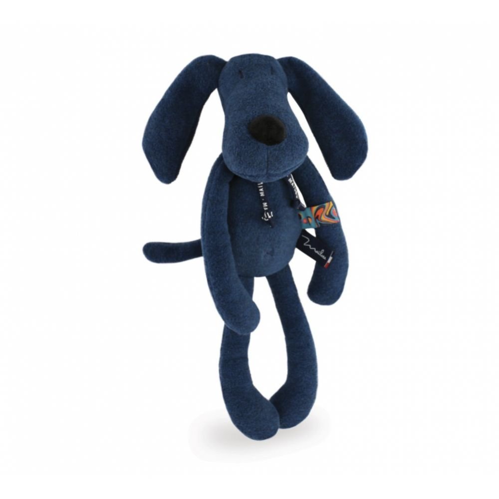 Par ici l'entrée des artistes ! "Oups le chien POP" est paré pour un festival de bonne humeur. Avec ses longs bras et jambes pour mieux prendre la pose et pour mieux vous enlacer, sa trombine originale et sympathique avec ses longues oreilles, son colori bleu profond chiné relevé d'une étiquette tissée tendance POP 70, "Oups le chien" a du style.