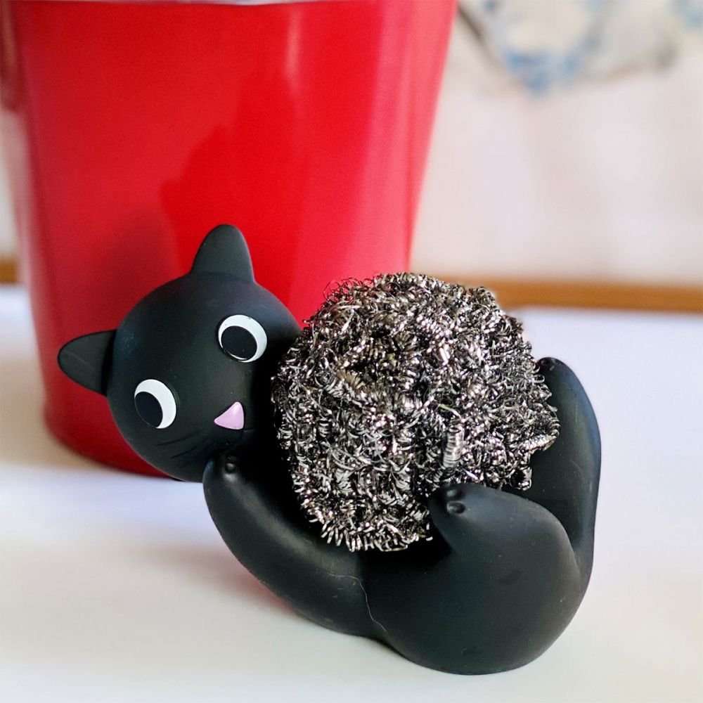 Le truc de Max ? C’est de vous mettre les éponges en pelote ! Max vous fera ronronner à la vue de la vaisselle très sale, mais il pourra aussi servir de porte-savon