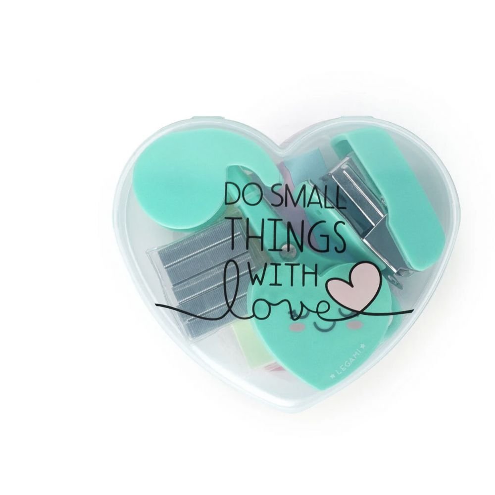 C’est le Mini Set de Papeterie qui, dans un tout petit espace, contient une solution à tout. Ainsi, quand vous aurez besoin d’un coup de main, il vous suffira de chercher dans votre cœur… littéralement.