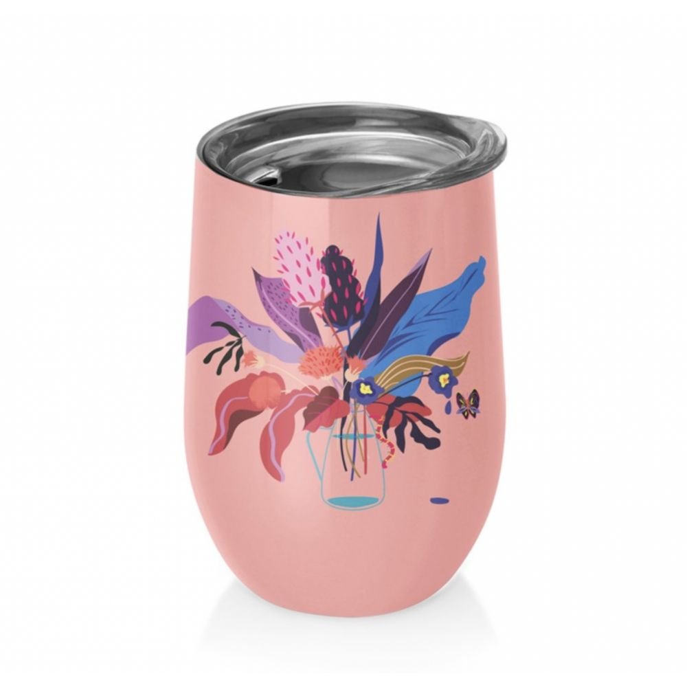 Un sublime bouquet de fleurs illustre ce mug de bureau isotherme.