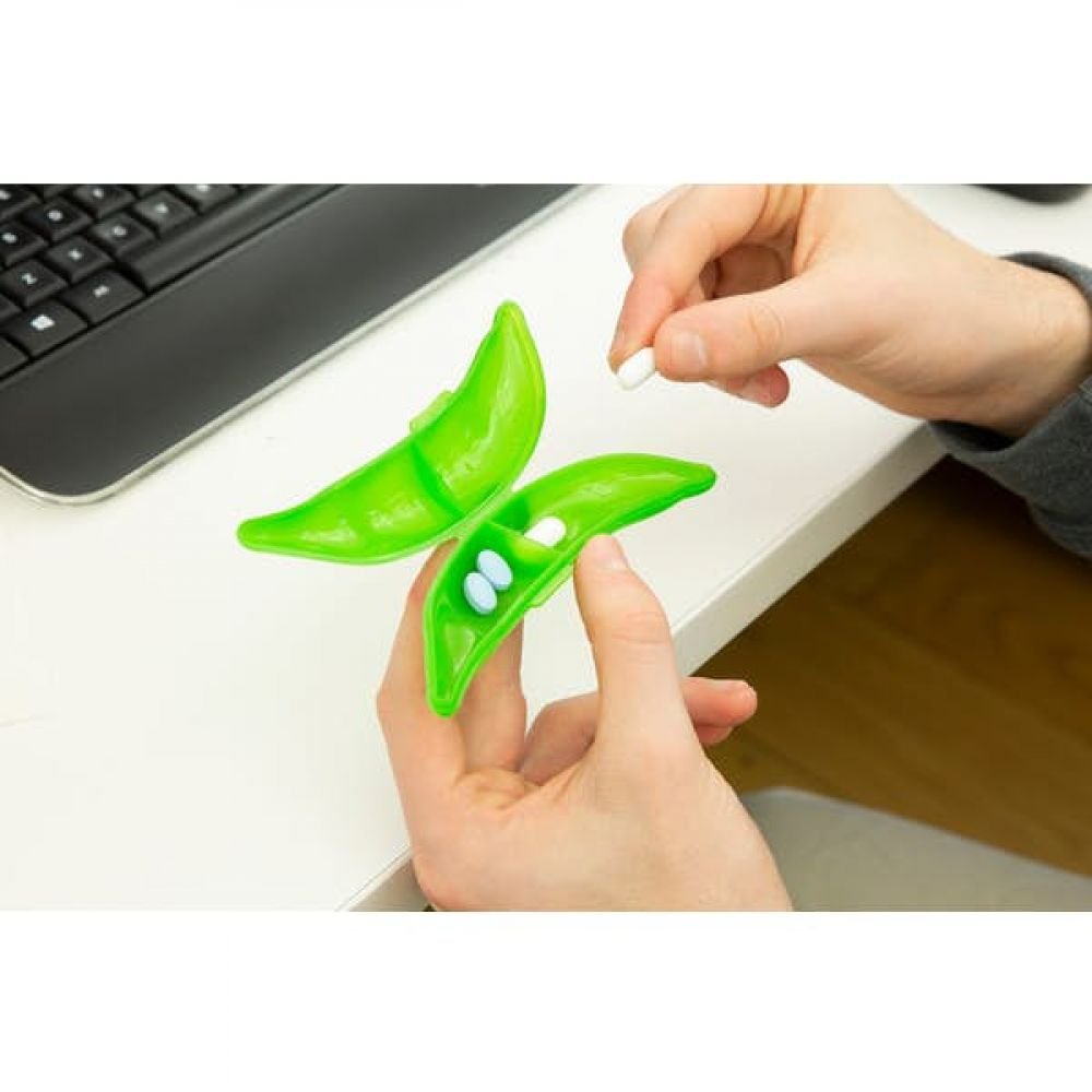 – Contenant à pilules en forme de cosse de haricot