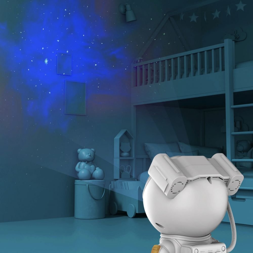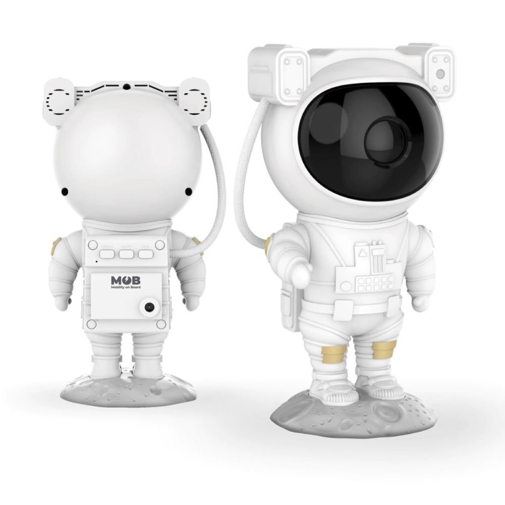 La tête de l’astronaute a une rotation de 180° pour l’orienter selon votre goût. Grâce à sa télécommande vous pouvez contrôler les couleurs, la vitesse de projection et l’intensité des lumières. Le petit plus : vous pouvez paramétrer un minuteur pour que la Galaxy Light s’éteigne toute seule. Il sera enfin possible d’avoir la tête dans les étoiles.