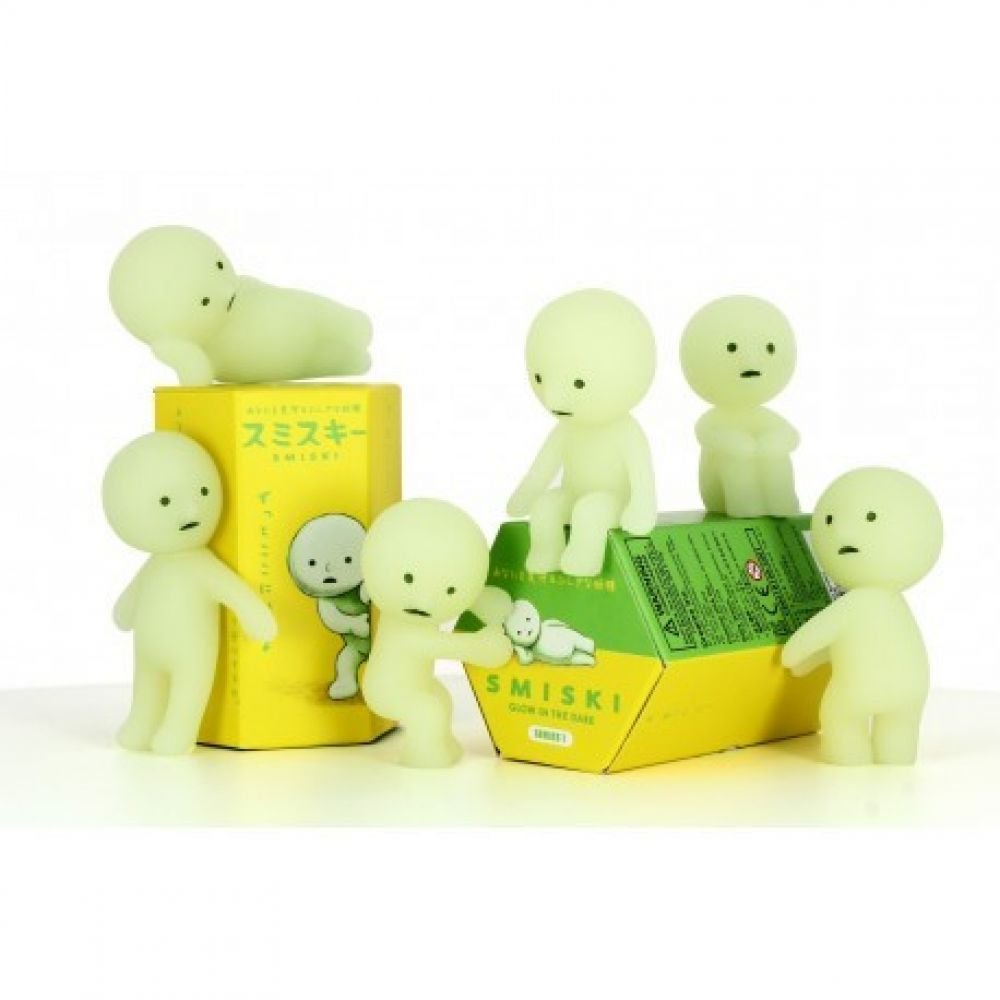 Première série de Smiski – six petites créatures espiègles qui vivent cachées dans les coins de la maison: dans la bibliothèque, sur la table de nuits ou sur une étagère… Invisibles le jours, les Smiski sont phosphorescents et la nuits ils brillent discrètement.
