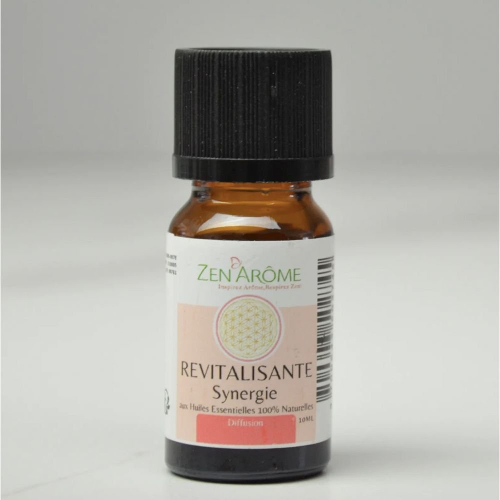 Synergie d'huiles essentielles Revitalisant 100% pures et naturelles. S'utilise lors d'une séance d'aromathérapie en diffusion atmosphérique. Cette synergie est un mélange d'huiles essentielles 100% pures et naturelles chémotypées.
