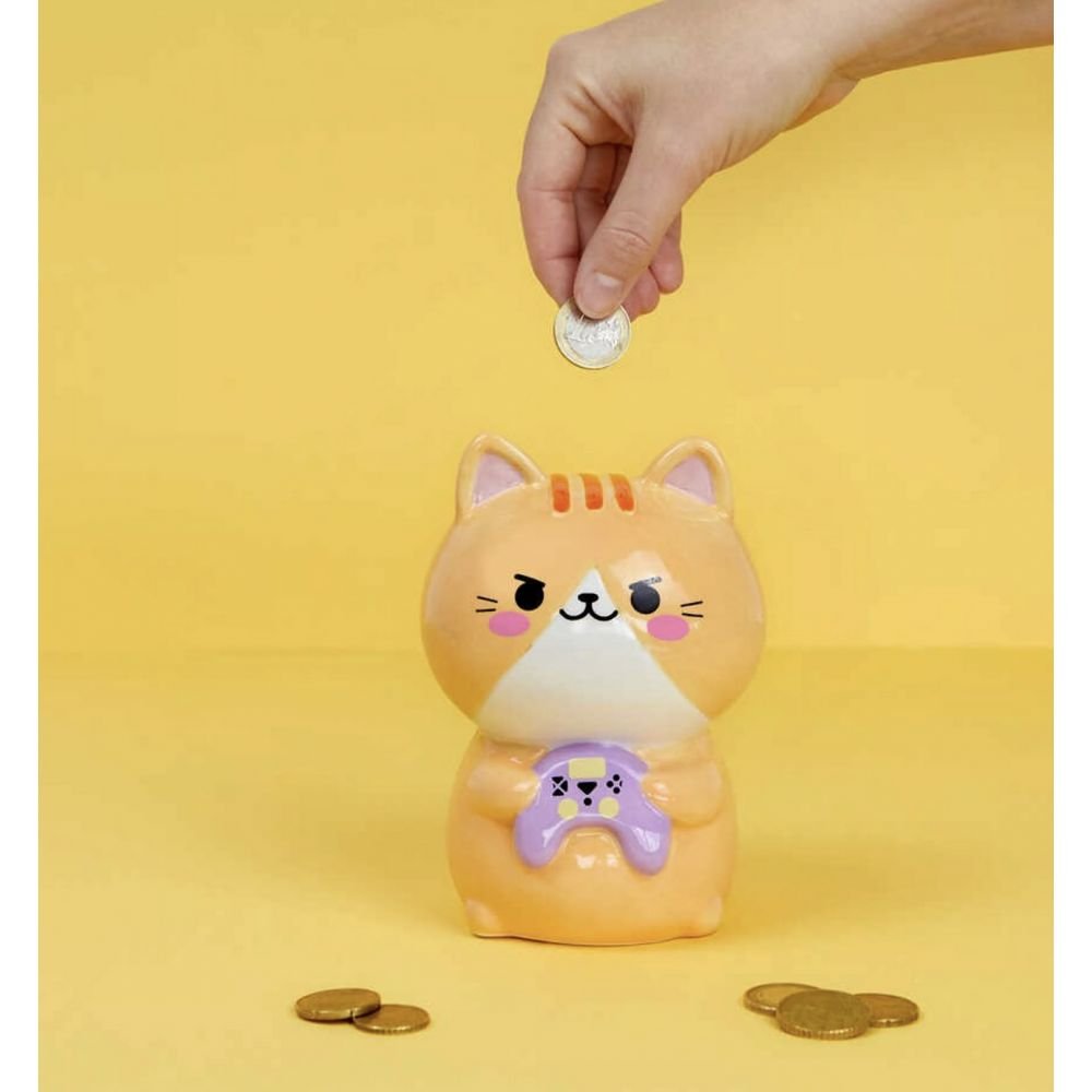 CONCEPTION ORIGINALE. Tirelire en forme de chat kawaii fan de jeux vidéo. Plus fonctionnel, cet adorable chat de style kawaii décorera à merveille une chambre, une table de chevet ou un bureau.